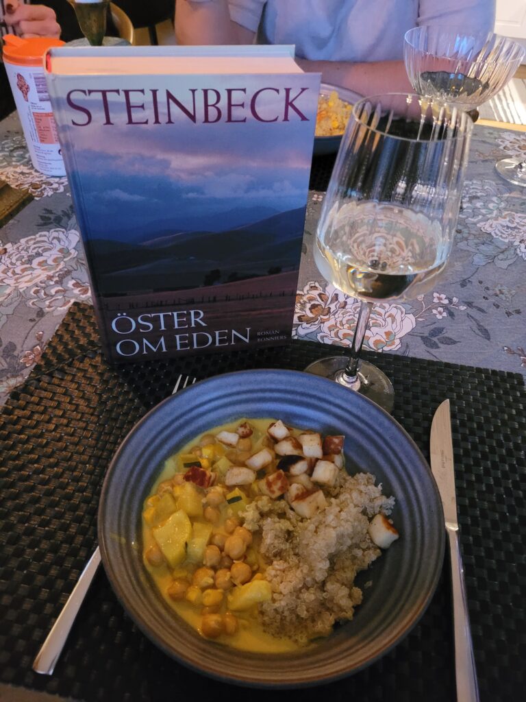 Det var min tur att föra anteckningar, och boken vi diskuterade var Öster om Eden av John Steinbeck. En riktig klassiker som handlar om kampen mellan gott och ont, familj, kärlek, skuld och försoning. Steinbeck lyckas verkligen fånga människans inre motsättningar, och boken väckte många tankar och diskussioner. En av frågorna som fastnade hos oss var om de två bröderna i berättelsen, vem var deras pappa?