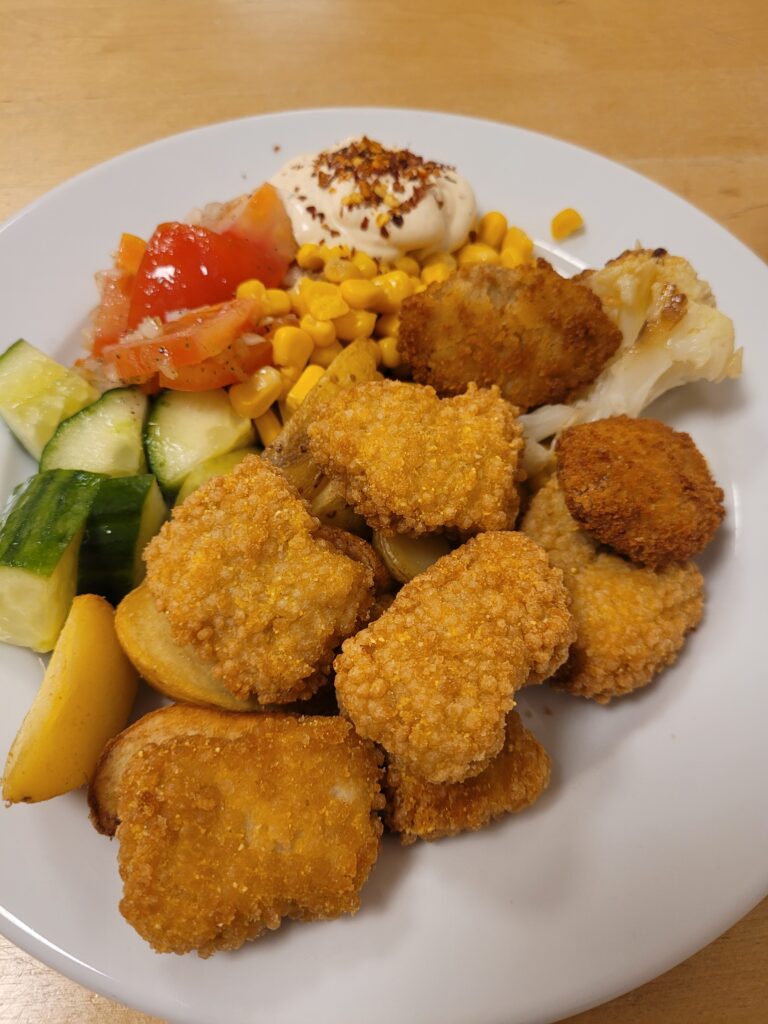 Idag fick vi en lunch som är uppskattad av eleverna, nuggets och klyftpotatis.
