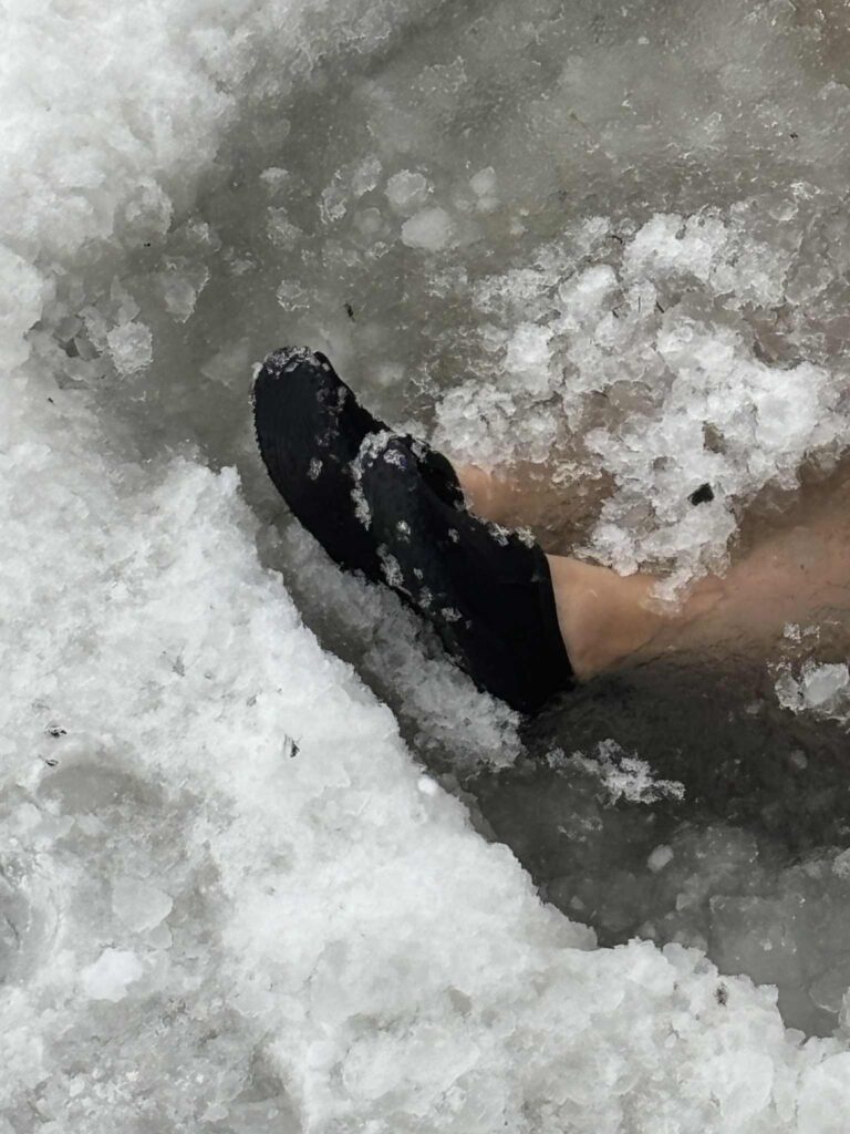 Lördagens ord i Christels fotoutmaning var skor och då valde jag en bild på dagens isvaksbad.