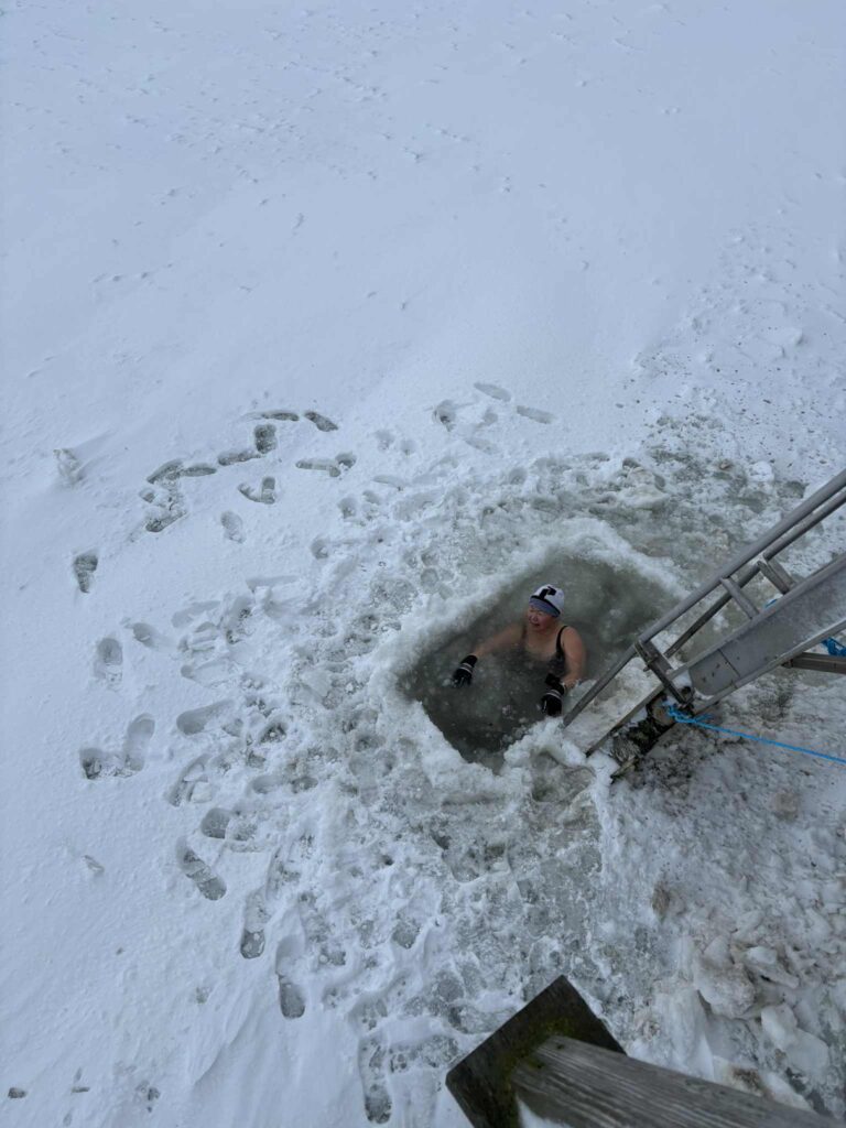 Det var härligt att få krypa ner i isslushen och det var bara en minusgrad i luften.