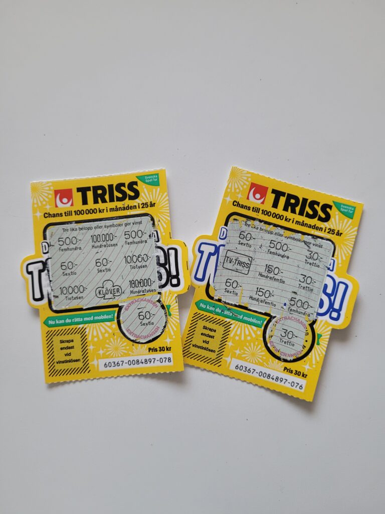 Jag köpte även två trisslotter, brukar göra det ibland och hoppas på vinst.