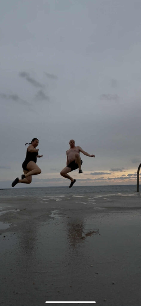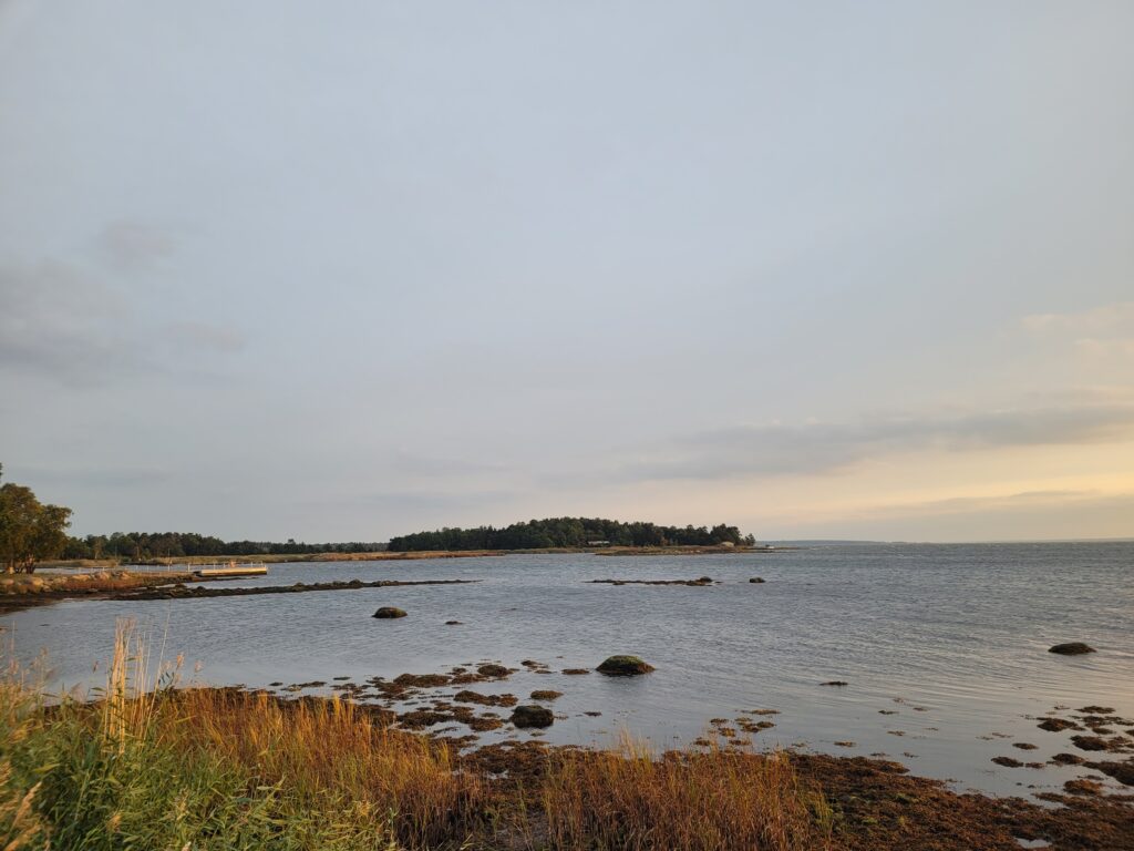 På lördagsmorgonen blev det löpning för Mats och jag gick bara lite utmed vattnet och tog bilder. Sedan blev det självklart ett dopp och det var efterlängtat. Nu har jag inte badat på en vecka och denna vecka har jag frusit jättemycket. Jag har en teori att jag inte fryser lika mycket om jag badar lite fler dagar i veckan. Jag ska testa min tes snart.