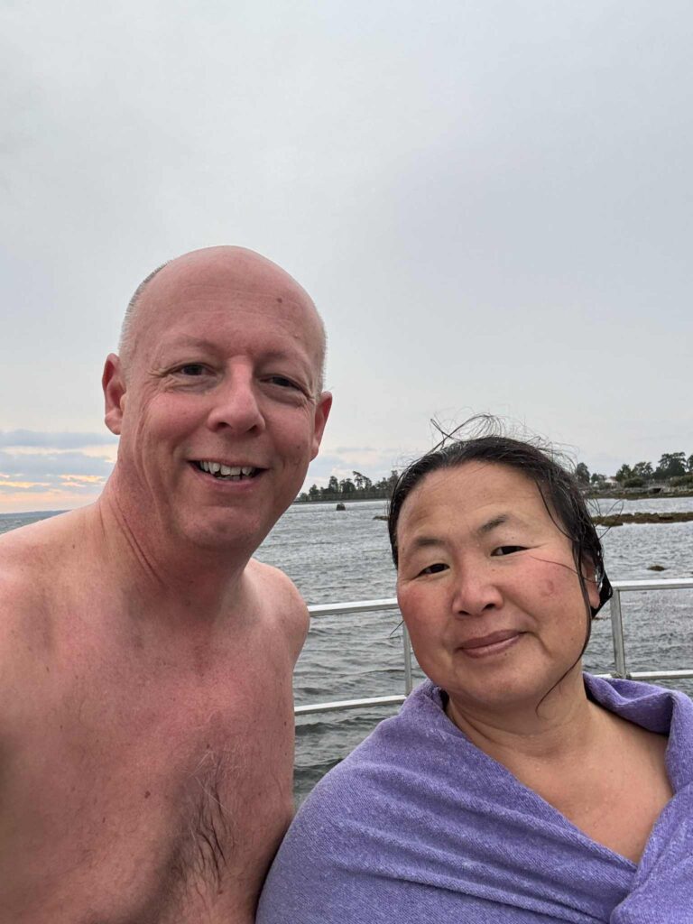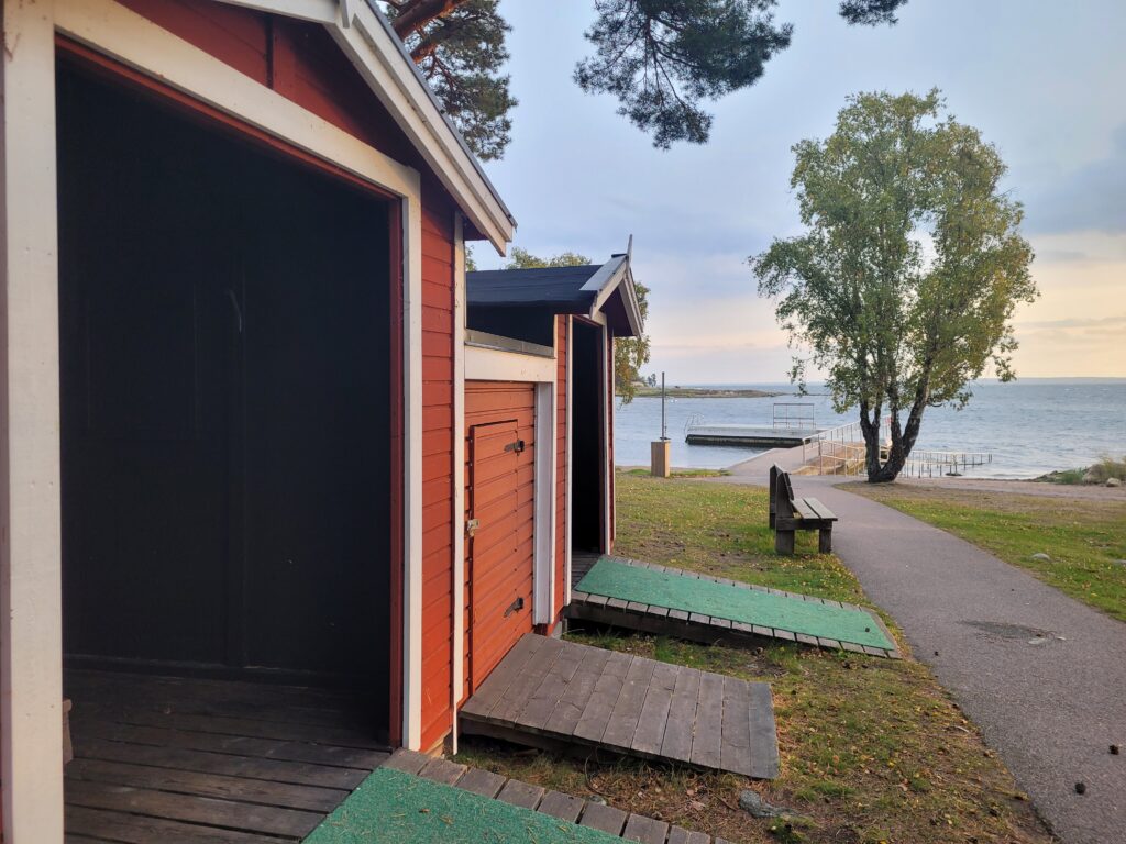 På lördagsmorgonen badade jag men Mats hoppade över badet då han kände att han höll på att bli förkyld. Det var 11 grader i luften och 15,2 grader i vattnet, så riktigt skönt.