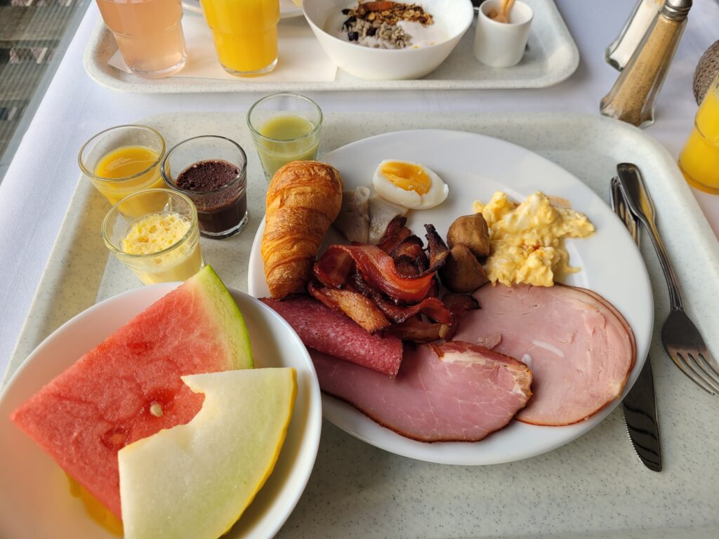 Efter vårt bad åkte vi och åt hotellfrukost. Vi tyckte det var längesedan och det passade bra.