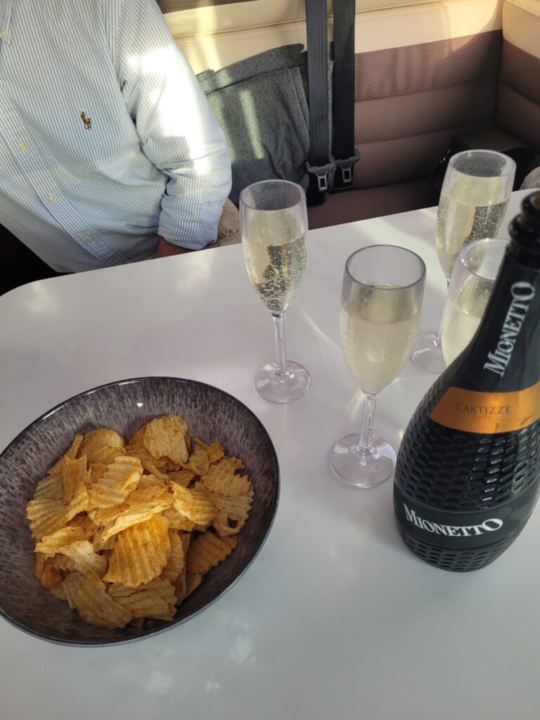 När vi var hemma så åkte Mats och handlade och jag städade inför att vi skulle träffa Italiengänget hos oss på kvällen. Jag hann även sova en stund så jag skulle vara pigg när våra gäster kom. Klockan 18:00 kom gästerna och då drack vi Bellini innan det blev förrätt. Mats och jag ansvarade för förrätten och det blev bruschetta med burrata. Camilla och Daniel hade gjort huvudrätten och då blev det lasagne. Till efterrätt blev det Tiramisu som Annika gjort. Vi blev mätta och nöjda och pratade minnen från vår Italienresa. Alla var överens om att det var en bra resa och att allt förflöt på bra. Vi tyckte att vi var en bra grupp tillsammans och planerar att vi ska åka på en till resa tillsammans. Än så länge vet vi inte när och vart men det finns tid till att planera.