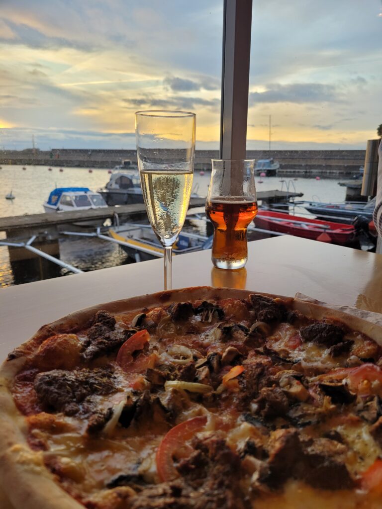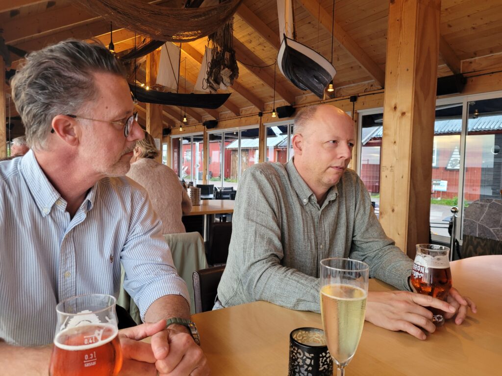 I fredags efter jobbet cyklade jag hem och Mats och jag packade ut i husbilen. Vi hämtade Malin och Urban klockan 16:00 och körde till Byxelkrok. Där uppe ställde vi oss på ställplatsen vid hamnen och började kvällen med att dricka bubbel. Sedan fortsatte vi till Victors restaurang där vi åt middag och drack bubbel och drinkar. Det blev en mysig kväll hos Victors hamnkrog. Det var inte så många gäster på restaurangen så de stängde tidigt och sedan följde Victor och Torun med till husbilen där vi satt och pratade och drack mer bubbel.