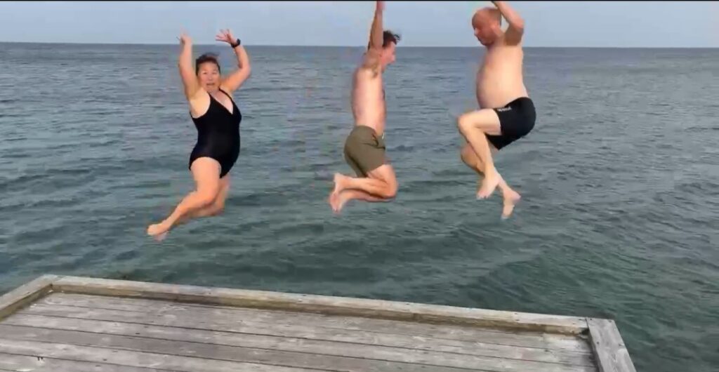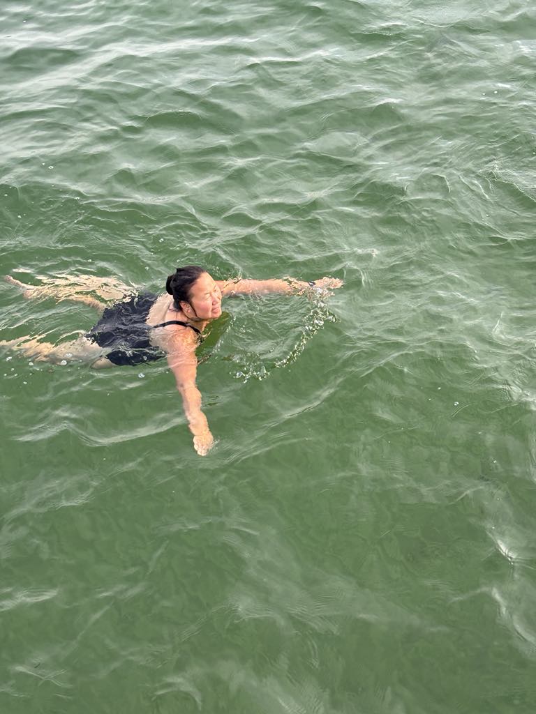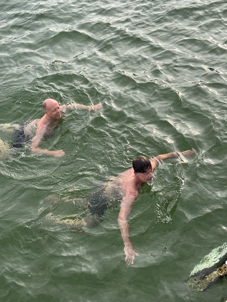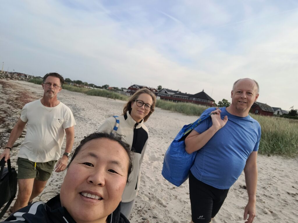 När jag kom hem bytte jag om och Mats och jag åkte till Långviken där vi träffade Madeleine för en kvällspromenad. Ikväll gick vi bara 4 kilometer för jag har lite ont i mitt knä fortfarande så jag vågade inte ta den långa rundan. Sedan badade vi och det var 17 grader i luften och 16,1 grader i vattnet. Det kändes att det var kallare i vattnet. Snart är det dags för kallbad igen och det ska bli härligt. Jag gillar när vattentemperaturen ligger runt 10 grader.