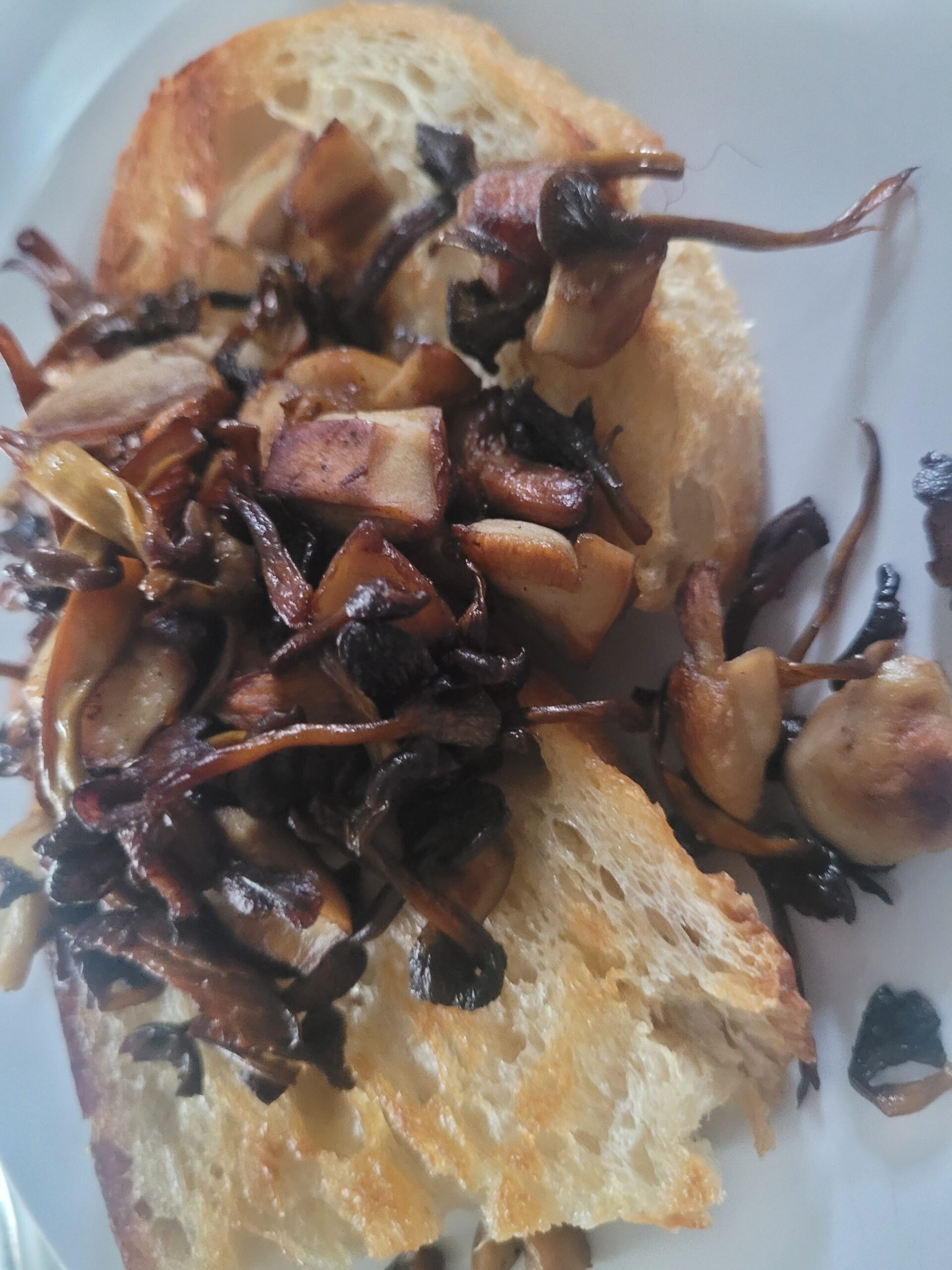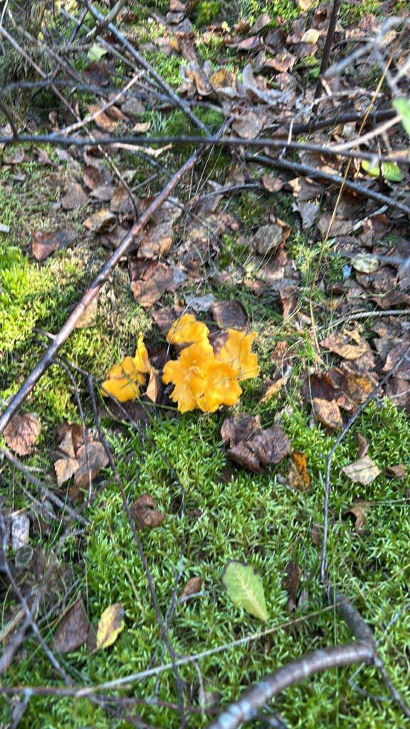 Vid ett-tiden åkte vi hem igen och då passade jag på att vila lite. Sedan kom dottern och hämtade upp oss för en liten tur i skogen. Vi skulle se om vi hittade några kantareller och det gjorde vi. Inte så mycket men det räckte till svampsmörgåsar ikväll. Det var så gott. Trattkantarellerna var rätt små så några behöver nog någon vecka till för att växa till sig.