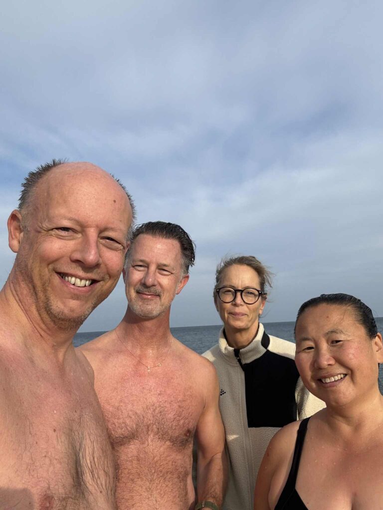 På lördagsmorgonen blev det en promenad och sedan badade vi. Det var 16,1 grader vattnet så det blev ett uppfriskande bad.